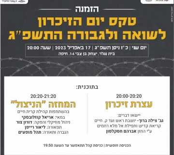 טקס יום הזיכרון לשואה ולגבורה תשפ"ג – "הניצול"Shanik09/04/2023בית נגלר- קרית חיים בשיתוף וועד קרית חיים מזמינים אתכם לטקס יום הזיכרון לשואה ... קרא עוד