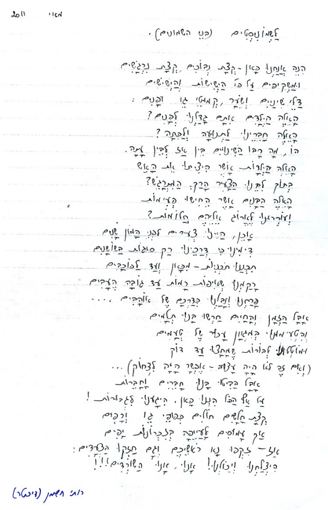 ואיך נרדמתי ככה בשמירה? מי אתה אהובי?