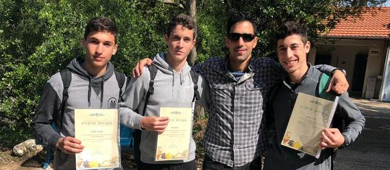 מימין לשמאל : עידו קדוש. המורה זוהר פרישיאן. דותן מילר. אופיר סיגל{ צילום רשות העתיקות }