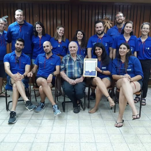 אלי גורן במרכז התמונה. { צילום משנת 2021 , בהיותו בן 90 תנועת "הנוער העובד והלומד}".